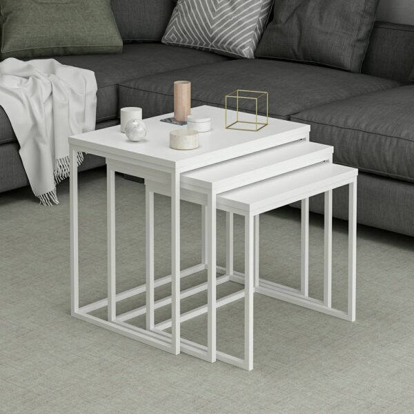 طقم طاولة ضيافة موديل Lenny مكونة من 3 ألوان باللون الأبيض والرصاصي والخشبي