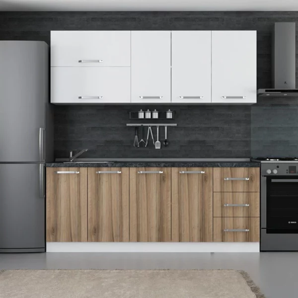 خزانة مطبخ موديل UBC مقاس 205سم باللون الأبيض والخشبي