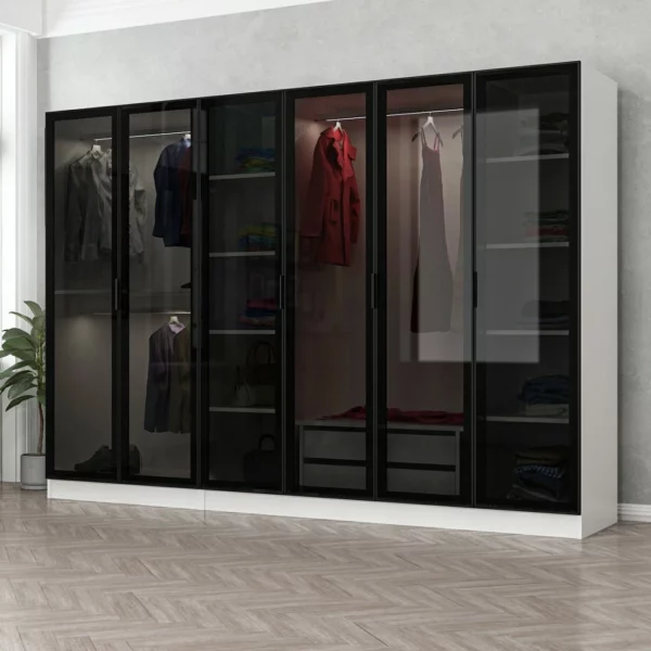 خزانة ملابس 8 أبواب زجاجية و4 أدراج موديل Kale باللون الرصاصي الغامق