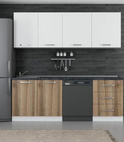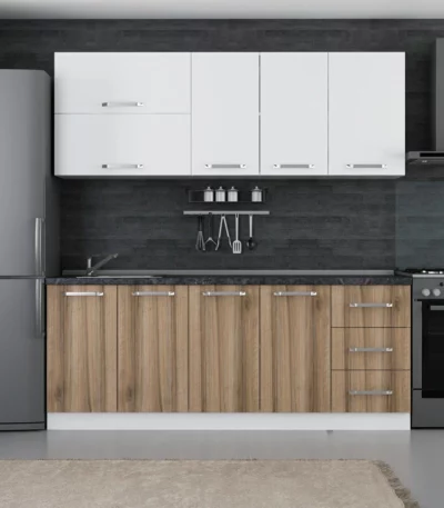 UBC mutfak dolabı beyaz ve ahşap 220 cm'dir