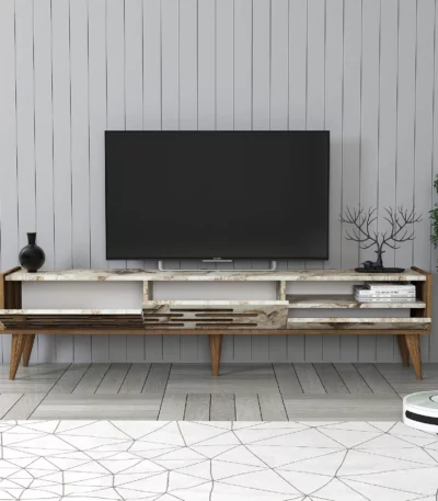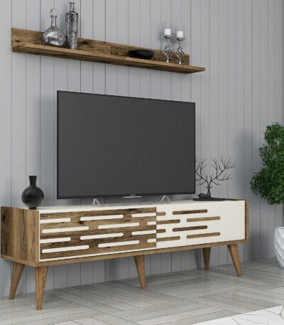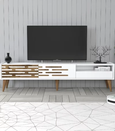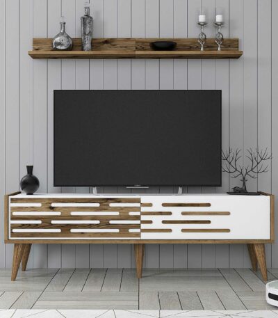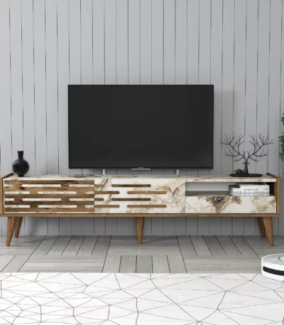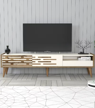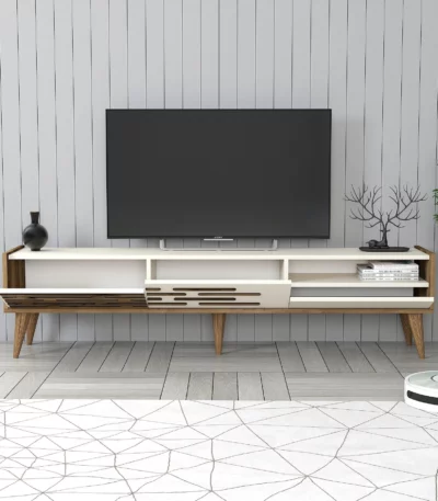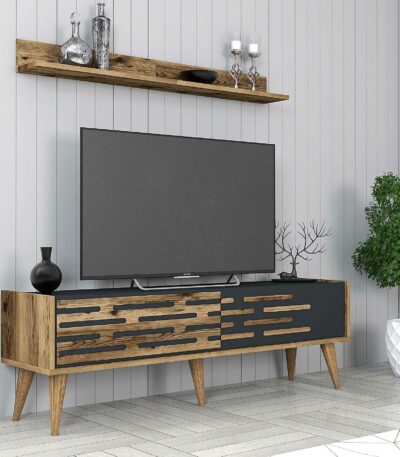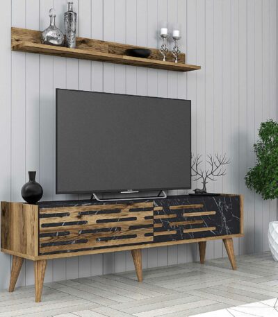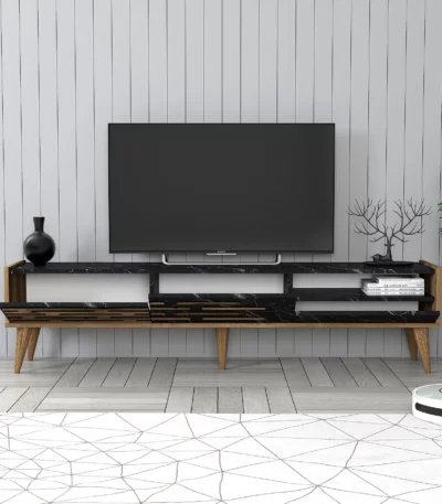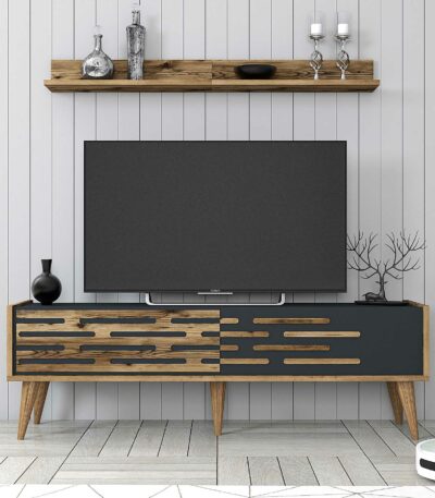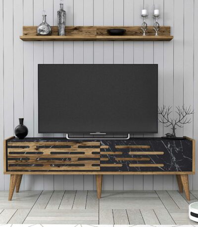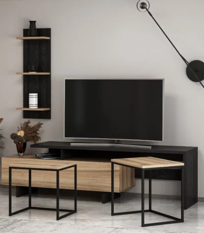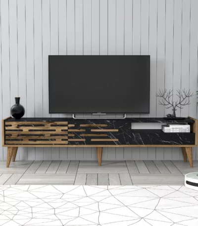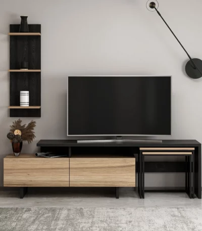 Siyah ve ahşap vera tv masası