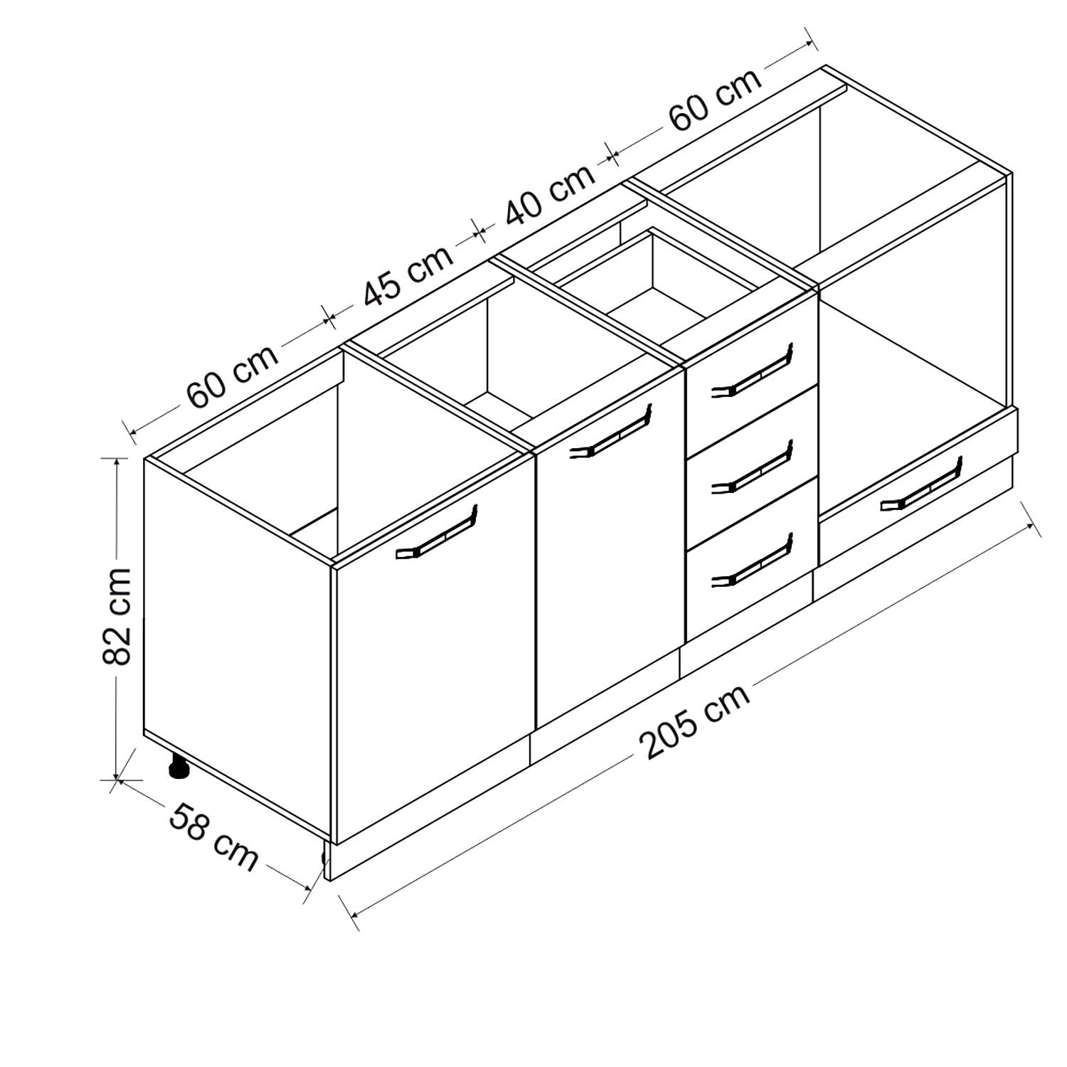 UBC Mutfak Dolabı Alt Bölüm 205 cm beyaz