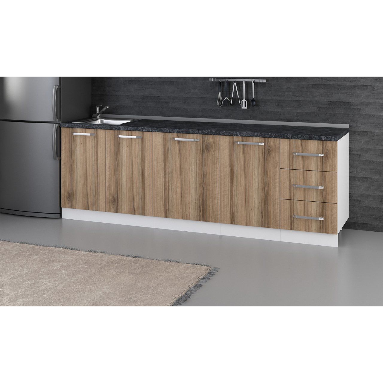 UBC Mutfak Dolabı Alt Bölüm 245 cm Ahşap