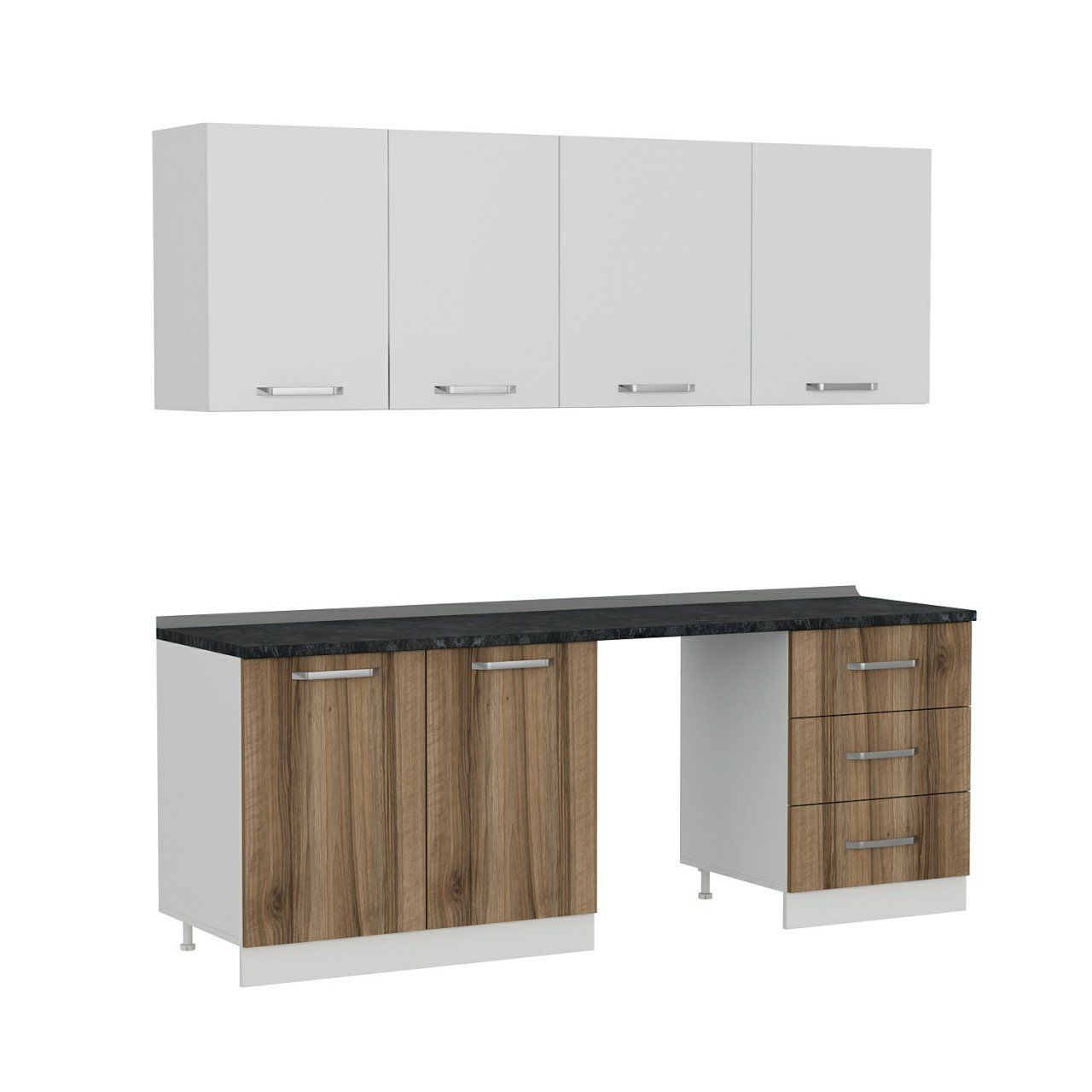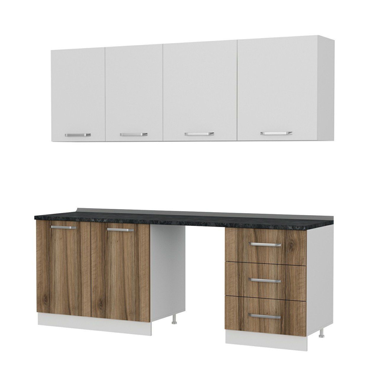 خزانة مطبخ موديل UBC مقاس 215سم باللون الأبيض والخشبي
