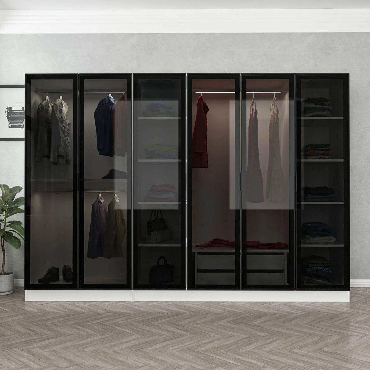 خزانة ملابس 6 أبواب زجاجية موديل Kale باللون الأبيض والأسود