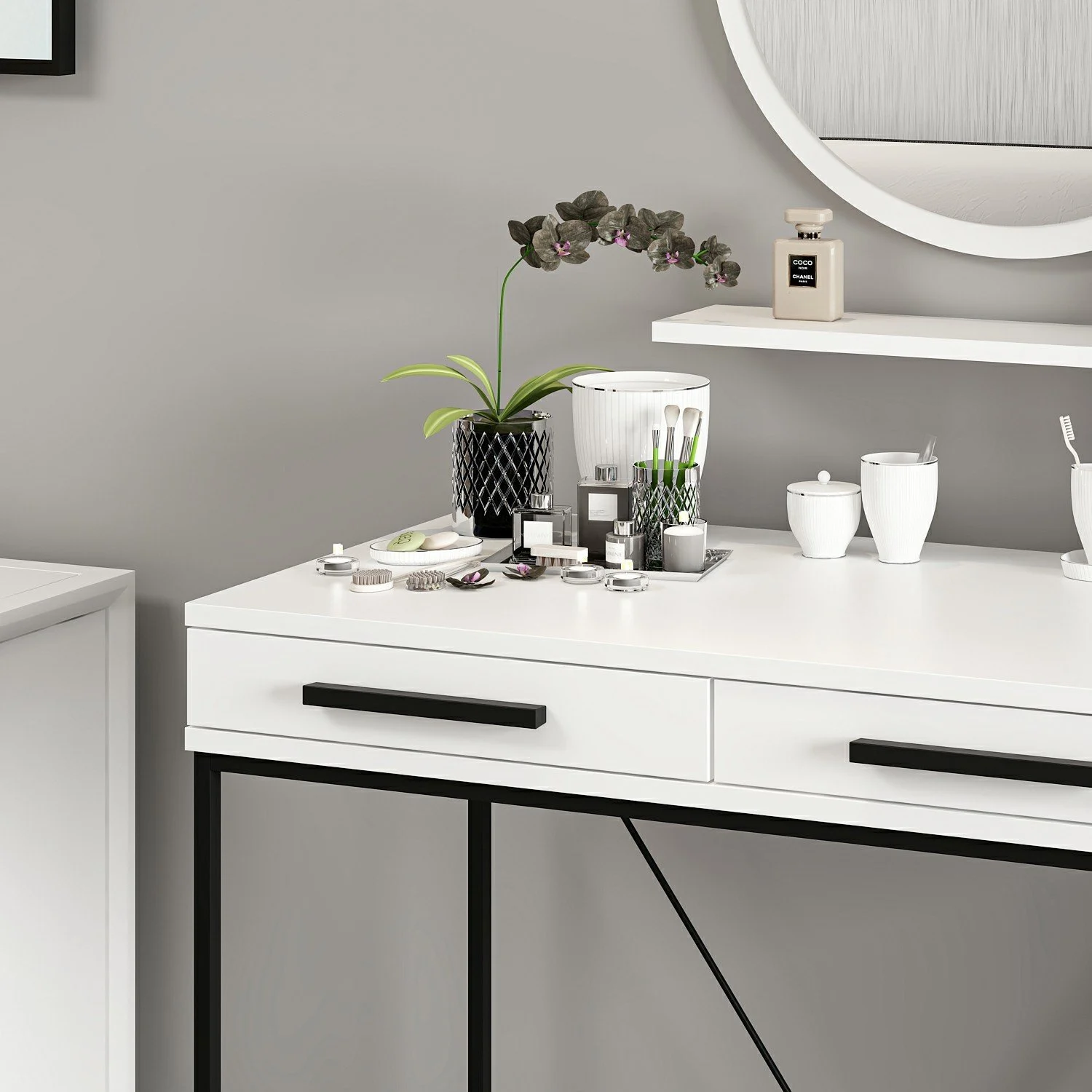- Kullanma: Chovera, makyaj, aksesuarlar gibi çeşitli unsurları depolamak ve görüntülemek için kullanılır.